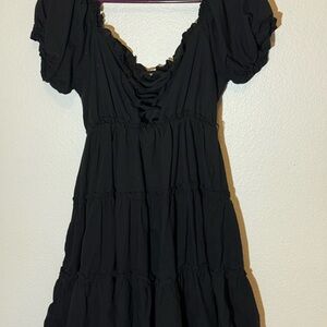 This chic black mini dress features playful ruffles and a stylish design, perfect for any occasion. Elevate your wardrobe with this versatile piece.