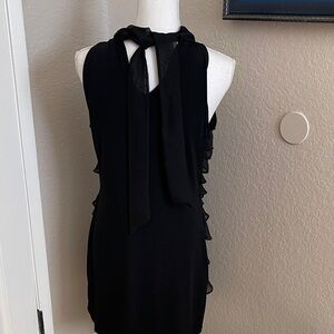 Step out in style with this chic black ruffled mini dress. Perfect for any occasion, its elegant design adds a touch of sophistication to your wardrobe.