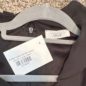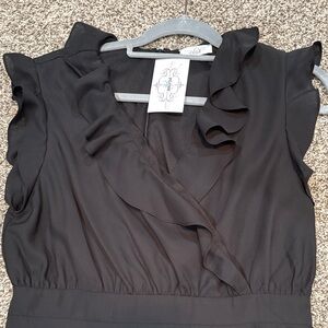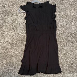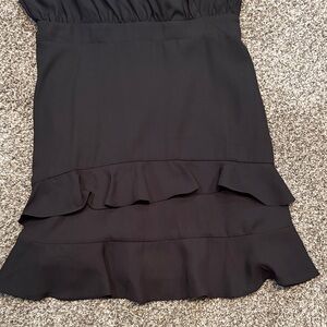 Step out in style with this chic black mini dress, featuring elegant ruffles for a sophisticated touch. Perfect for any occasion.