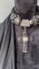Add a touch of elegance to your wardrobe with this chic black scarf adorned with silver beads. Perfect for any occasion, it effortlessly enhances your style. Boho chic. Features a cross design. Lots of fringe and beads.
