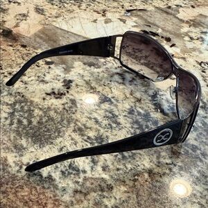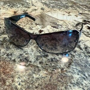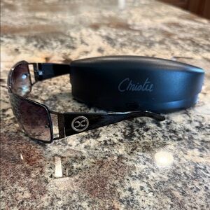 Stylish black sunglasses featuring a sleek design. Comes with a matching case.