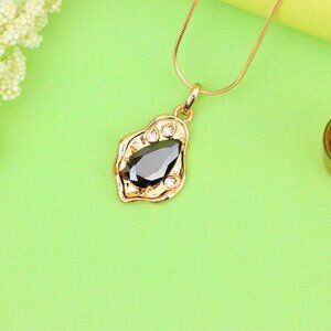 "Chic Black Teardrop Pendant in Gold Frame, XPPT1735