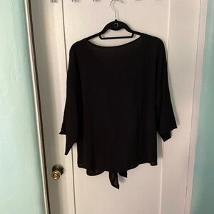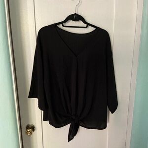 Chic Black V-Neck Tie-Front Top – Effortless & Stylish, Size 2XL
