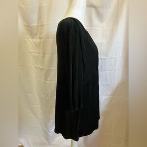 This chic black blouse features a flattering V-neck design, perfect for versatile styling. Ideal for both casual and formal occasions.