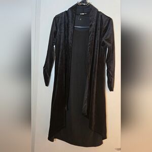 New Without Tags. Gorgeous black velvet dress with a built-in cardigan, knee-length, soft and stylish.