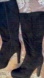These Chic Black Suede Wide Calf 4”black heeled women's boots are so soft. Elevate your style with these chic black heeled boots. Perfect for any occasion, they combine elegance and comfort effortlessly. They are in good condition however there are a few areas where the suede has been worn. Please see all pictures and video.