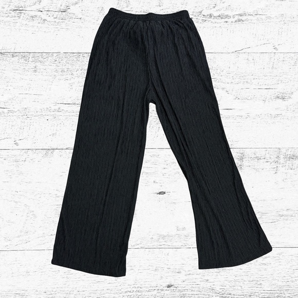 Elevate your wardrobe with these chic black wide leg pants. Perfect for versatile styling, they offer both comfort and elegance.