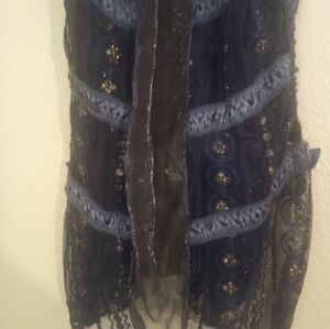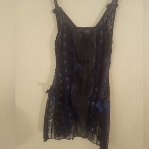 Very sexy. Experience the allure of this chic black lace chemise, enhanced with elegant blue accents. Perfect for adding a touch of sophistication to your intimate wear. Pre-owned, In excellent condition. O/S