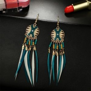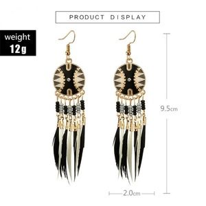 Elevate your style with these chic black and gold dangle earrings. Perfect for any occasion.