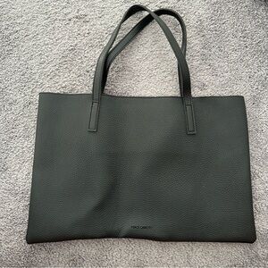 Stylish Vince Camuto tote bag with a sleek design. Features a black body with a gray stripe. Perfect for everyday use.