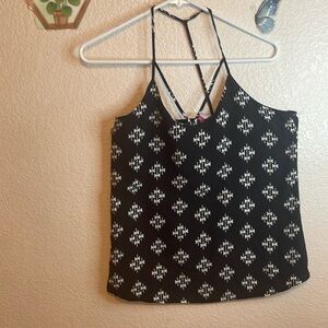 Stylish tank top with a geometric pattern. Features a strappy back design. Perfect for casual outings.