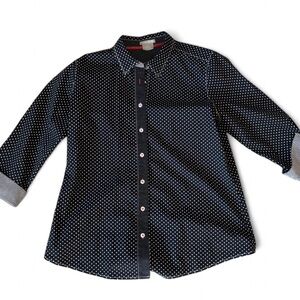 Chic Black and White Polka Dot Blouse with Rolled Sleeves
