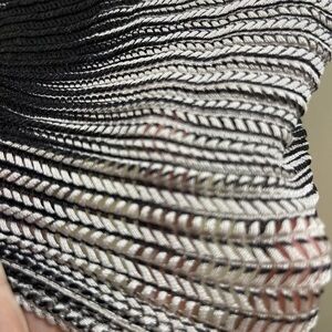 Elegant textured dress with a modern design. Features a black and white pattern. Perfect for any occasion.
