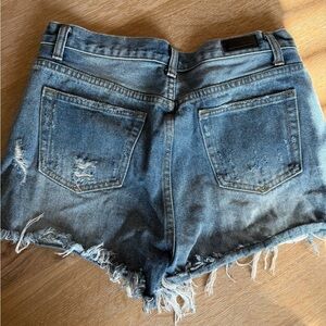Elevate your style with these chic blue denim shorts. Featuring a trendy distressed look, they're perfect for casual outings.