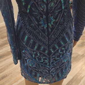 Turn heads with this chic blue lace-up dress, perfect for any occasion. The long sleeves add a touch of elegance to your look.