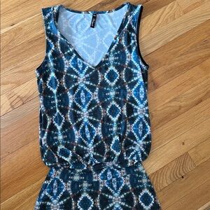 Step out in style with this chic blue patterned mini dress. Perfect for any occasion, its vibrant design and comfortable fit make it a wardrobe essential.