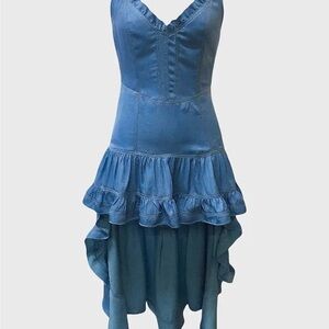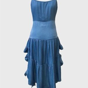 Elegant blue dress with ruffled layers. Ideal for stylish outings.