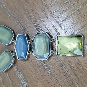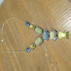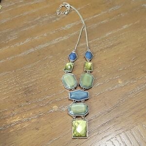 Add a touch of elegance with this chic necklace featuring blue and green geometric stones. Perfect for any occasion. 8.5" to chain add 3" extender