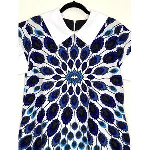 Turn heads with this chic blue and white mini dress. Its bold pattern and stylish design make it a must-have for your wardrobe.