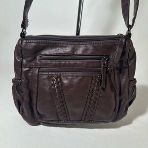 This chic shoulder bag in a deep brown hue is crafted from a leather-like material with a textured finish, offering both style and durability. Its medium size makes it perfect for everyday use, while the long strap ensures comfortable wear. Ideal for those seeking a blend of elegance and practicality.