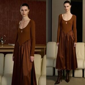 Elevate your wardrobe with this chic brown maxi dress. Featuring long sleeves and a flowing silhouette, it's perfect for any occasion.