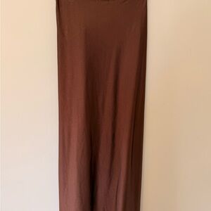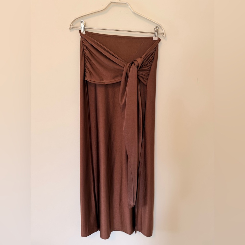 This chic brown maxi skirt offers a stylish and versatile look for any occasion. Its rich color adds a touch of elegance to your wardrobe.