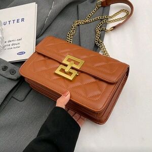 Elevate your style with this chic brown quilted shoulder bag, featuring a striking gold chain strap. Ideal for any occasion.