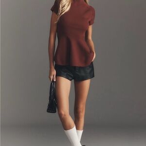 Elevate your style with this chic brown ribbed short sleeve top. Perfect for versatile wear, it offers a flattering fit and timeless appeal.
