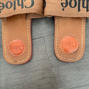 Stylish brown sandals with logo straps. Comfortable and trendy design.