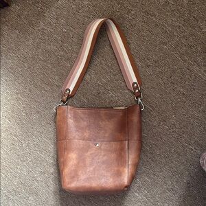 Upgrade your accessory collection with this chic brown shoulder bag. The stylish striped strap adds a modern touch, making it ideal for any outing.