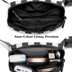 Features: Classic plaid design with a sleek, versatile silhouette that transforms from waist bag to crossbody or sling effortlessly. Lightweight, water-repellent nylon makes it perfect for daily use, festivals, or travel. Five pockets for smart organization, including a roomy main compartment and interior mesh pockets — keeps your essentials tidy and accessible.