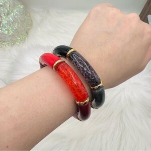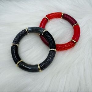 Chic Colorblock Resin Bangle Bracelet 2 pieces