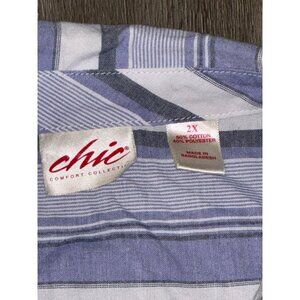 Chic Comfort Collection Blue & White Striped Button-Up Shirt 2X