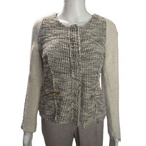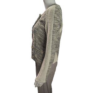 Chic & Cozy Women's Boucle Tweed Knit Cardigan With Zipper Pockets Sz S