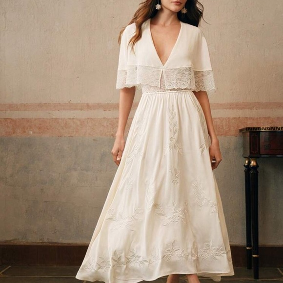 This chic cream midi dress features exquisite lace accents, perfect for elevating your style. Ideal for any occasion. Never been worn before!