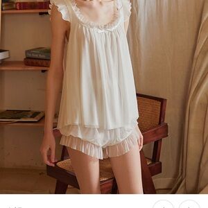 Embrace comfort and elegance with this chic cream ruffle nightgown. Perfect for a cozy night's sleep or lounging in style. Only has been tried on. Did not fit and couldn’t return