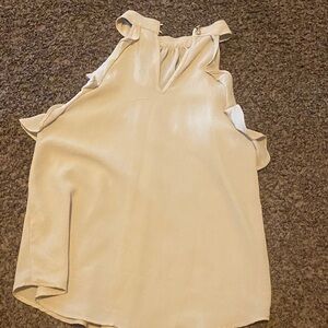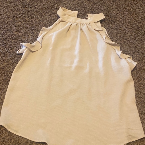 This chic cream tank top features elegant ruffles, offering a stylish and versatile look for any occasion.