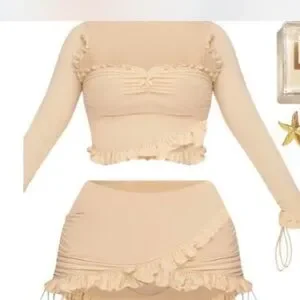 WaydaMin Stylish three-piece set with ruffle details. Long sleeve crop top and mini skirt. Perfect for a night out.