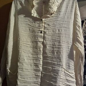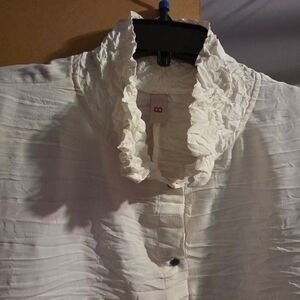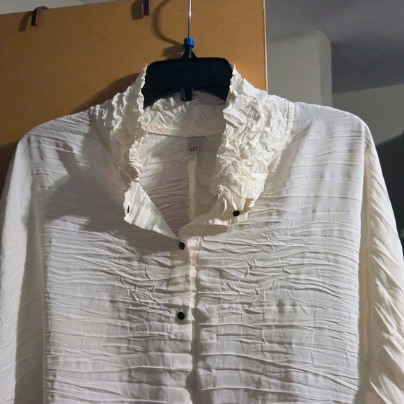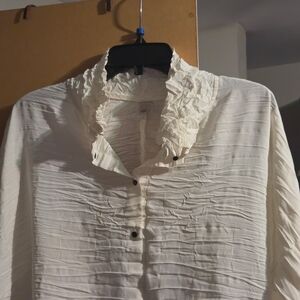 Elevate your style with this chic cream blouse featuring elegant ruffles. Perfect for any occasion.