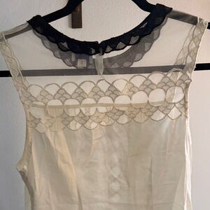 Elevate your style with this chic cream blouse featuring elegant black lace accents. Perfect for any occasion, this top adds a sophisticated touch to your wardrobe.