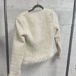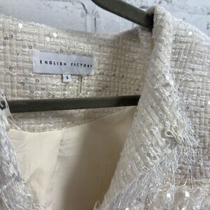 Chic Cream Tweed Jacket with Fringe - ENGLISH FACTORY - NWOT - Size Small