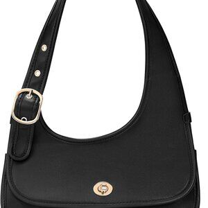 Features: A stylish crescent-shaped tote made from soft, textured faux leather. Features an adjustable wide shoulder strap for a perfect fit and a secure twist lock closure. Spacious enough for your essentials like phone, wallet, lipstick, and sunglasses, with an extra slip pocket. Perfect for mixing style and practicality.