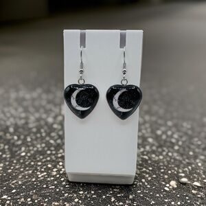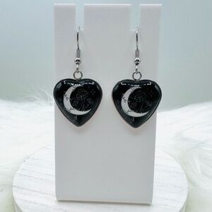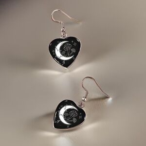 Crescent Moon & Mushroom Heart-Shaped Dangle Earrings