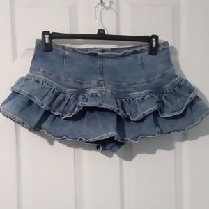 Elevate your casual wardrobe with this chic denim skort featuring playful ruffles. Perfect for any relaxed outing.