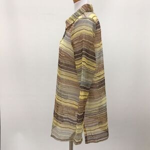 Chic Earth-Tone Striped Semi-Sheer Button-Down Blouse - Perfect for Layering!