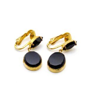 Chic Elegant Vintage Onyx Earrings, Marquise Drops to Circle Dangle in Gold Tone Clip On