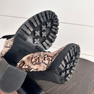 Chic Faux Snakeskin Platform Lace-Up Boots 5M Combat Style High Block Heel Size5