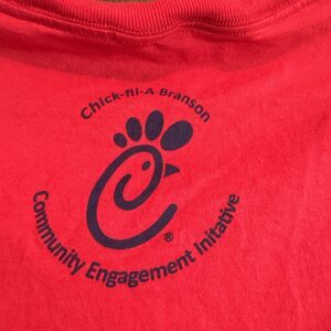 Chic Fil A Branson Mo Im Here To Serve Catering T Shirt Adult Size Medium? ( size tag cut out - see measurements) pit to pit is 18 inches / shoulder to hem 24 inches. Front says hi there Im here to serve