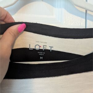 Elevate your everyday style with this effortlessly chic peplum top from LOFT. Featuring classic black and white stripes, this top adds a timeless touch to any wardrobe. The flattering peplum silhouette cinches at the waist to enhance your natural shape, while the soft, stretchy fabric ensures all-day comfort.