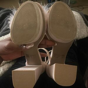 ✨ Fashion Nova "Hey There" Feather Heels in Nude ✨
